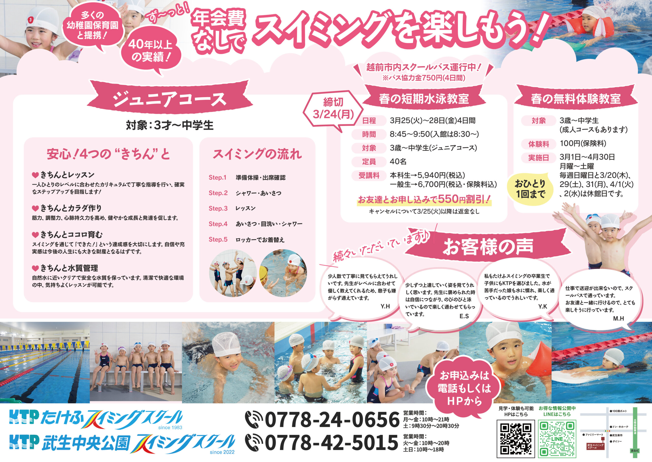 スイミングでは毎年恒例!春の短期水泳教室を開催します。
