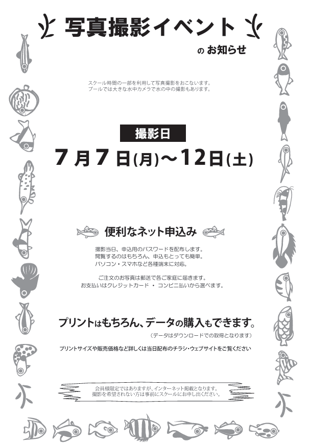 なお、撮影を希望されない場合は、お手数ですが、お早めにスイミングスクールのフロントまでお申し付けください。